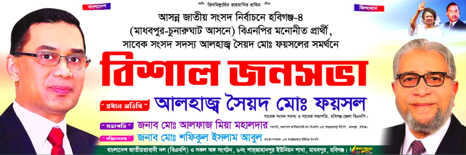 হবিগঞ্জ–৪ সৈয়দ মো. ফয়সলকে সমর্থনে শাহজাহানপুর ইউপিতে জনসভা আগামীকাল