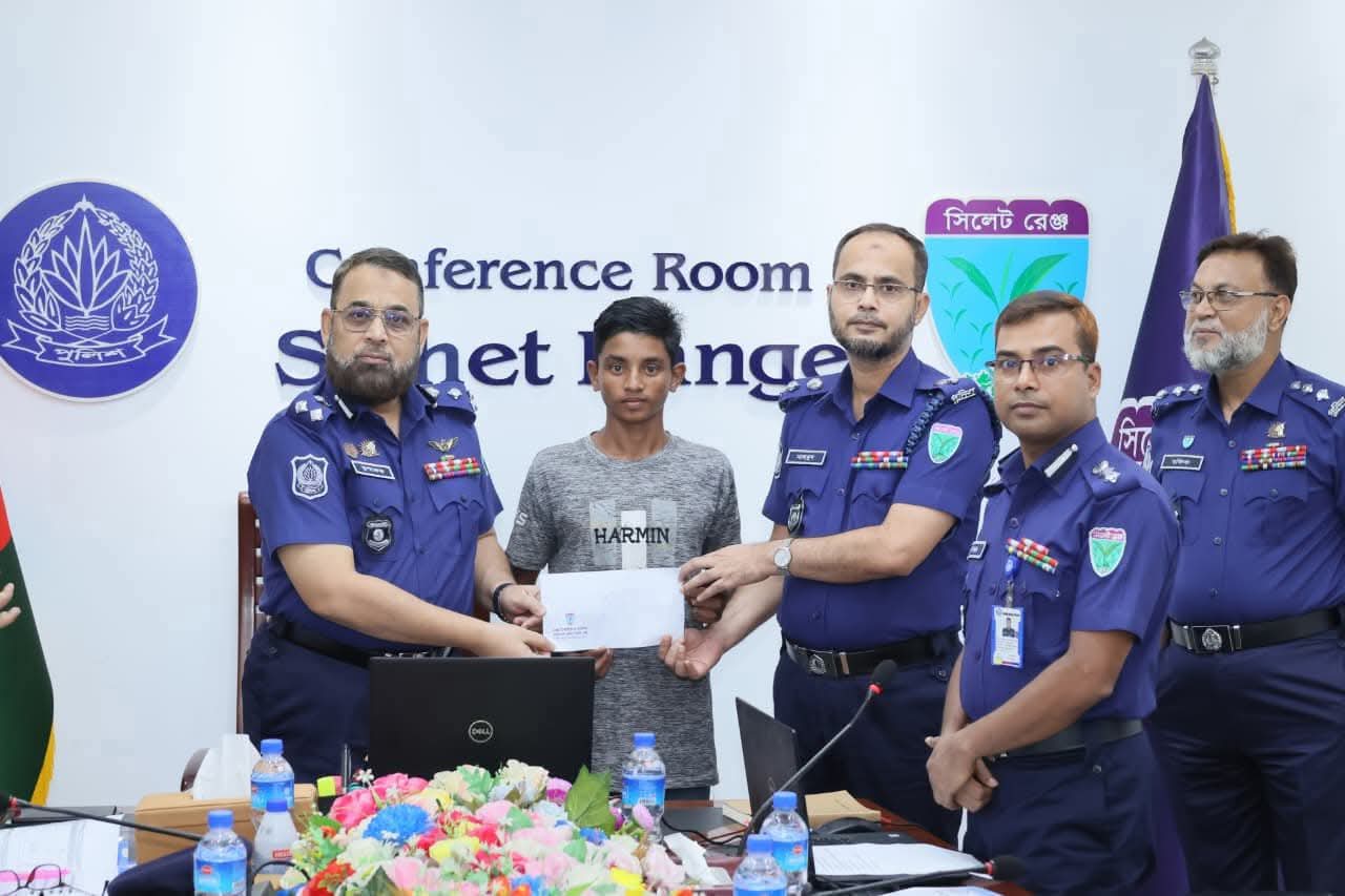 জৈন্তাপুরের কিশোরকে পুরস্কৃত করলেন সিলেট রেঞ্জ ডিআইজি।