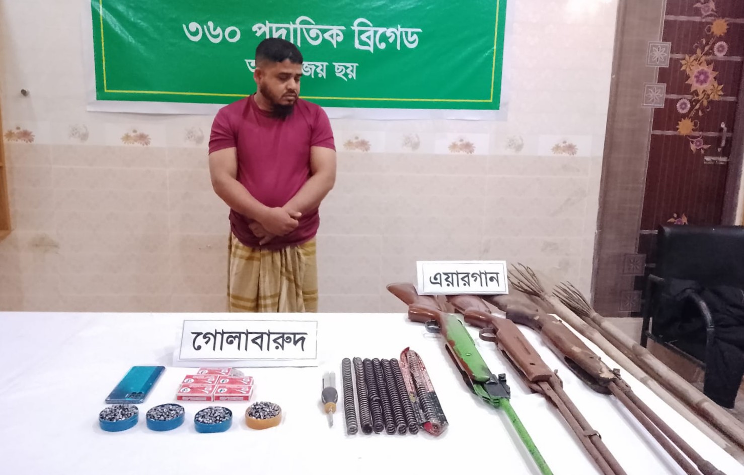 বানিয়াচংয়ে সেনাবাহিনীর অভিযানে অস্ত্র গুলাবারুদ সহ যুবক আটক।